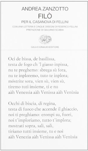 Il percorso poetico di Zanzotto, fondamentale nella poesia italiana degli ultimi cinquant'anni, ha saputo recuperare lingue, forme e culture più o meno defunte rivitalizzandole, come scrisse Fortini, in "un'oltranza informale, esorbitante, lacerante". "Filò", che ebbe inizialmente l'aspetto minore di un libro d'occasione, è in realtà la quintessenza, magari in una forma più cordiale rispetto ad altri libri, di questi elementi chiave della poesia di Zanzotto. Ciò che sembra ampiamente masticato dalla storia si riproietta in una forma sperimentale: passato e futuro si alleano per stanare il grumo oscuro e indifferenziato che abita sia l'inconscio soggettivo sia la sostanza panica del mondo. L'uso ampio del petèl, lingua infantile che ha la concretezza del parlato ma è anche piena di misteriosi richiami, porta la raccolta in questa direzione. Lo stesso felice sodalizio con Fellini è l'esito di una comune visione della storia e delle origini, il comune inseguimento di archetipi travestiti da fantasie private e viceversa. Riproporre questo piccolo grande libro a un anno dalla scomparsa del poeta vuole soprattutto essere un omaggio e insieme un invito a.