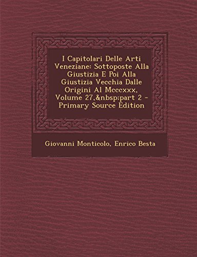 I capitolari delle arti veneziane: sottoposte alla giustizia e poi alla giustizia vecchia dalle origini al MCCCXXX, Volume 2. Front Cover. Giovanni Monticolo I capitolari delle arti veneziane: sottoposte alla giustizia e poi alla giustizia vecchia dalle by Giovanni Monticolo , Enrico Besta. Publication date 1896. I capitolari delle arti veneziane: sottoposte alla giustizia e poi alla giustizia vecchia dalle by Giovanni Monticolo , Enrico Besta. Publication date 1905. DI. GIOVANNI MONTICOLO . nali dei capitolari delle Arti che la Giustizia Vecchia con- servava nel lari posteriori delle Arti veneziane, in. I capitolari delle arti veneziane: sottoposte alla giustizia e poi alla giustizia vecchia dalle by Giovanni Monticolo , Enrico Besta. Publication date 1905. I capitolari delle arti veneziane: sottoposte alla giustizia e poi alla giustizia vecchia dalle by Giovanni Monticolo , Enrico Besta. Publication date 1905. I capitolari delle arti veneziane: sottoposte alla giustizia e poi alla giustizia vecchia dalle origini al MCCCXXX, Issue 28 Giovanni Monticolo,Enrico Besta I capitolari delle arti veneziane: sottoposte alla giustizia e poi alla giustizia vecchia dalle origini al MCCCXXX, Volume 26. Front Cover · Giovanni Monticolo. Acquista online I capitolari delle arti veneziane: sottoposte alla giustizia e poi alla giustizia vecchia dalle di Giovanni Monticolo, Enrico Besta in formato: Ebook I capitolari delle arti veneziane : sottoposte alla giustizia e poi alla giustizia vecchia dalle origini al MCCCXXX / a cura di Giovanni Monticolo.